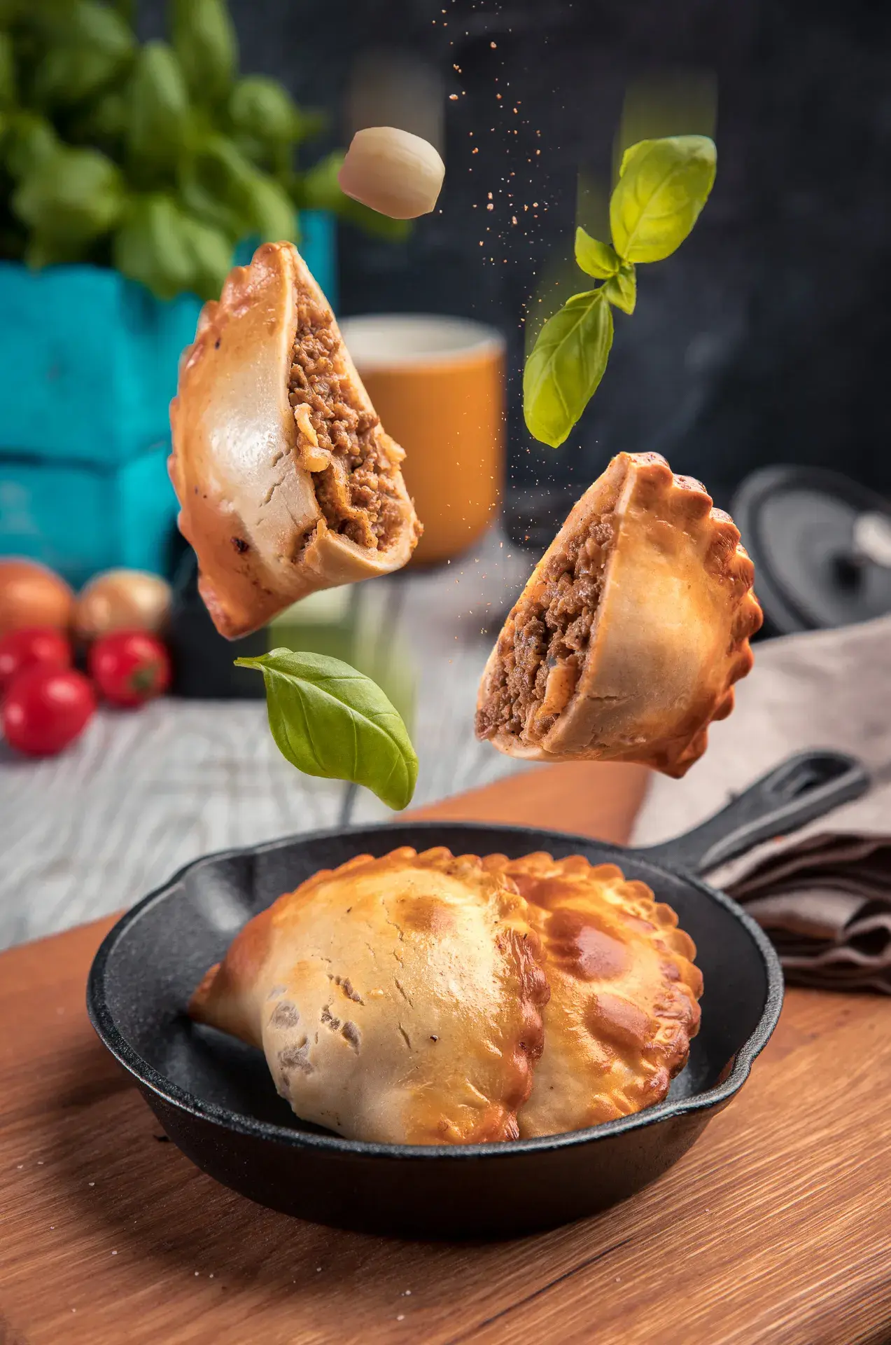 Változatos töltelékekkel készített péksütemény. Sütésre kész. Tésztatáska. Innovatív. Egyedi.
