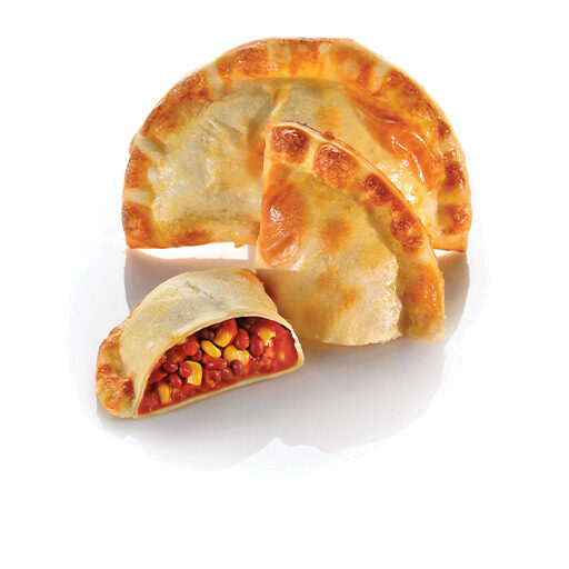 A vegan filled dough with tomato sauce, beans, corn, and mild Mexican spices, wrapped in a flaky golden crust, perfect for all.